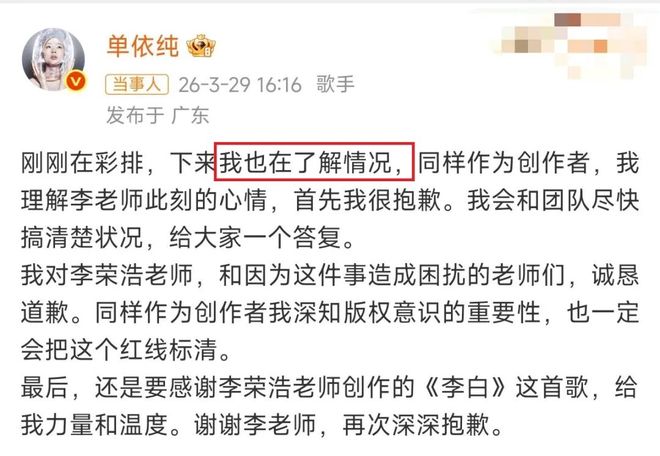 这回音乐圈的长辈与后代的风云,说白了便是单依纯并没有版权认识,也丢了口碑。